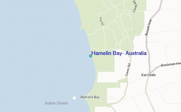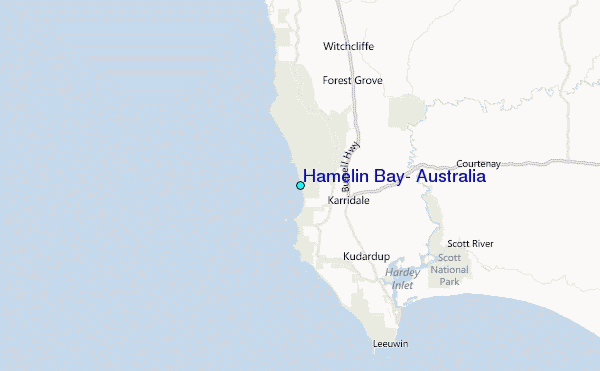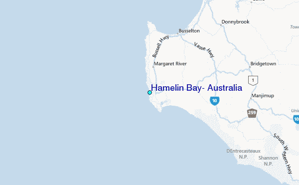 Use this relief map to navigate to tide stations, surf breaks and cities that are in the area of Hamelin Bay, Australia.