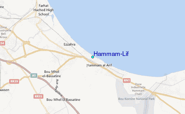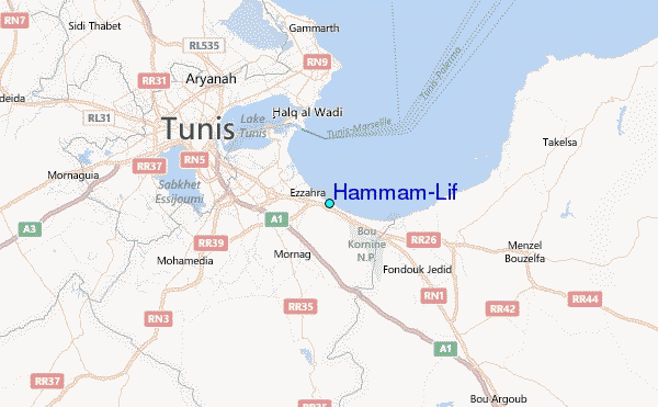 Use this relief map to navigate to tide stations, surf breaks and cities that are in the area of Hammam-Lif.
