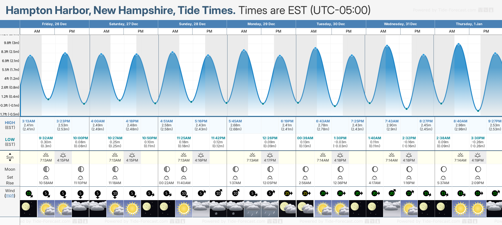 NOTE: Use of this site for Hampton Harbor, New Hampshire tide times is subject to our terms.