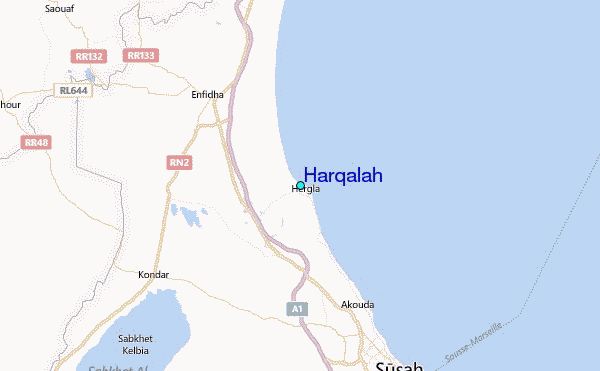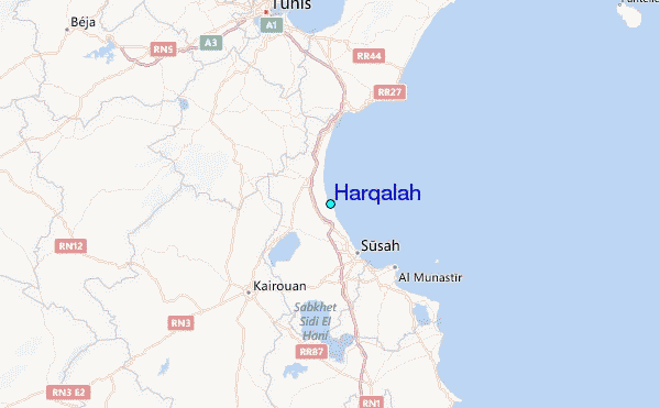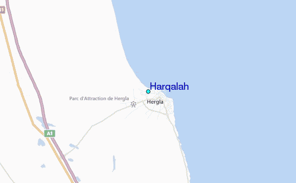 Use this relief map to navigate to tide stations, surf breaks and cities that are in the area of Harqalah.