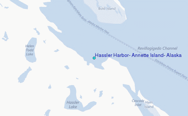 Use this relief map to navigate to tide stations, surf breaks and cities that are in the area of Hassler Harbor, Annette Island, Alaska.