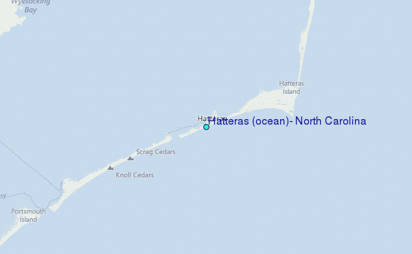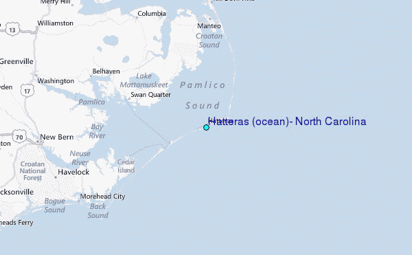 Use this relief map to navigate to tide stations, surf breaks and cities that are in the area of Hatteras (ocean), North Carolina.
