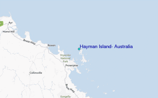 Use this relief map to navigate to tide stations, surf breaks and cities that are in the area of Hayman Island, Australia.
