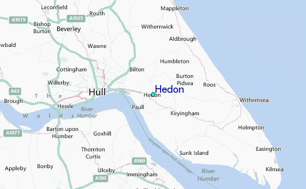 Use this relief map to navigate to tide stations, surf breaks and cities that are in the area of Hedon.