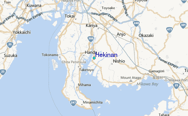 Use this relief map to navigate to tide stations, surf breaks and cities that are in the area of Hekinan.