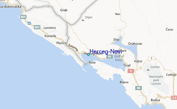 Use this relief map to navigate to tide stations, surf breaks and cities that are in the area of Herceg-Novi.