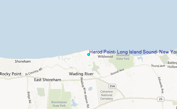 Use this relief map to navigate to tide stations, surf breaks and cities that are in the area of Herod Point, Long Island Sound, New York.