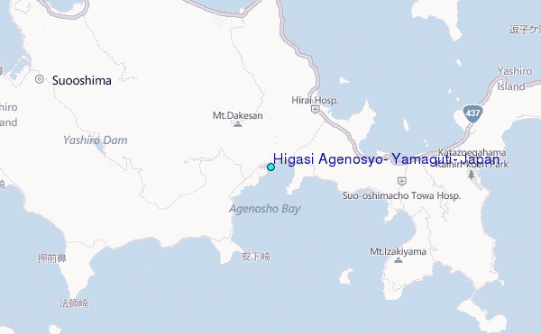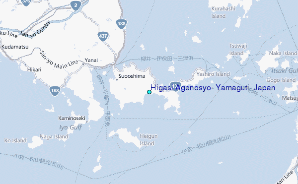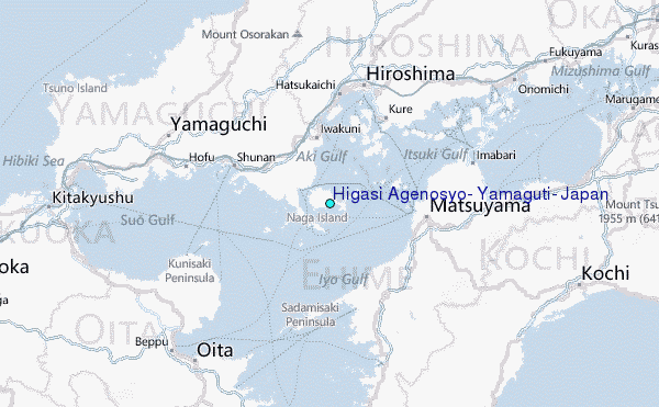 Use this relief map to navigate to tide stations, surf breaks and cities that are in the area of Higasi Agenosyo, Yamaguti, Japan.