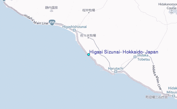 Use this relief map to navigate to tide stations, surf breaks and cities that are in the area of Higasi Sizunai, Hokkaido, Japan.