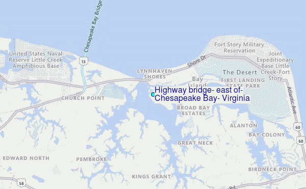 Other Nearby Locations' tide tables and tide charts to Highway bridge, east of, Chesapeake Bay, Virginia: