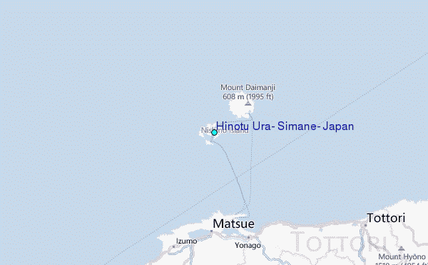 Use this relief map to navigate to tide stations, surf breaks and cities that are in the area of Hinotu Ura, Simane, Japan.