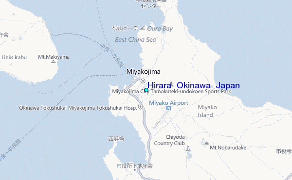 Use this relief map to navigate to tide stations, surf breaks and cities that are in the area of Hirara, Okinawa, Japan.