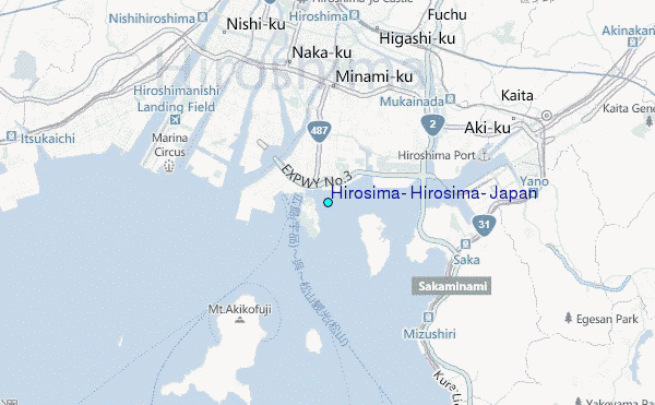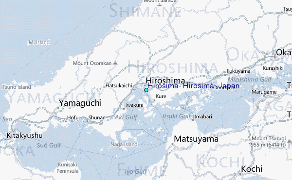 Use this relief map to navigate to tide stations, surf breaks and cities that are in the area of Hirosima, Hirosima, Japan.