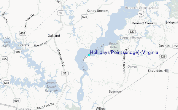 Other Nearby Locations' tide tables and tide charts to Hollidays Point (bridge), Virginia: