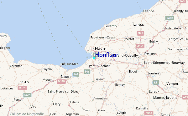 Use this relief map to navigate to tide stations, surf breaks and cities that are in the area of Honfleur.