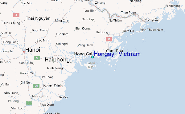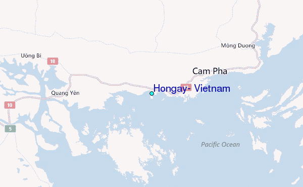 Use this relief map to navigate to tide stations, surf breaks and cities that are in the area of Hongay, Vietnam.