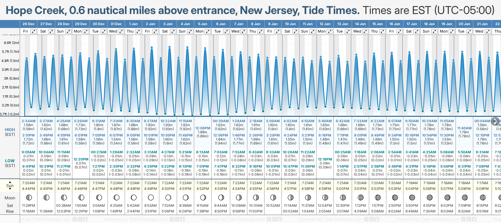 Hope Creek, 0.6 nautical miles above entrance tide times for December and January