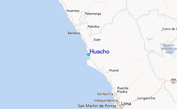 Use this relief map to navigate to tide stations, surf breaks and cities that are in the area of Huacho.