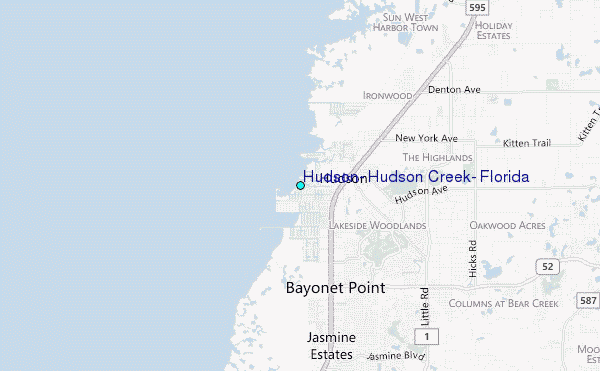 Use this relief map to navigate to tide stations, surf breaks and cities that are in the area of Hudson, Hudson Creek, Florida.