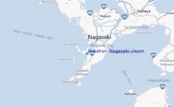 Use this relief map to navigate to tide stations, surf breaks and cities that are in the area of Hukahori, Nagasaki, Japan.