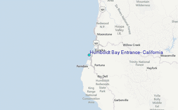 Use this relief map to navigate to tide stations, surf breaks and cities that are in the area of Humboldt Bay Entrance, California.