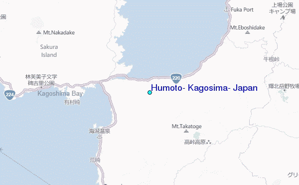 Use this relief map to navigate to tide stations, surf breaks and cities that are in the area of Humoto, Kagosima, Japan.