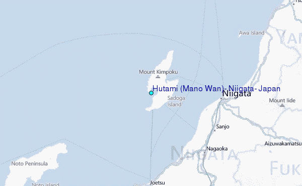 Use this relief map to navigate to tide stations, surf breaks and cities that are in the area of Hutami (Mano Wan), Niigata, Japan.