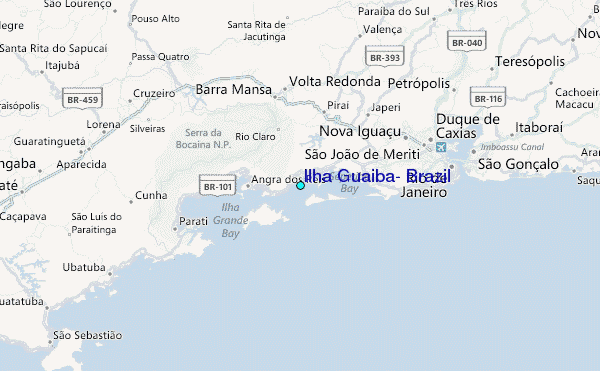 Use this relief map to navigate to tide stations, surf breaks and cities that are in the area of Ilha Guaiba, Brazil.