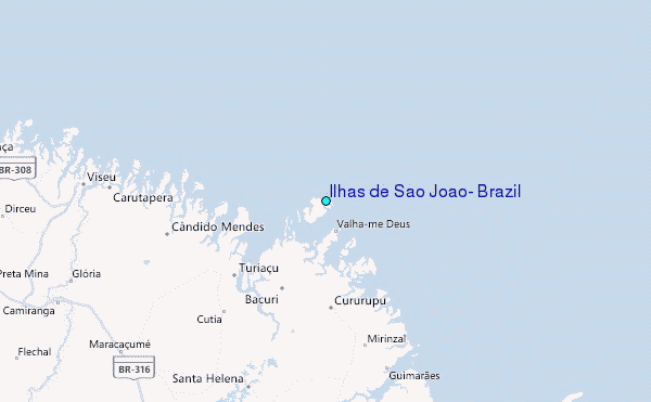 Use this relief map to navigate to tide stations, surf breaks and cities that are in the area of Ilhas de São João, Brazil.