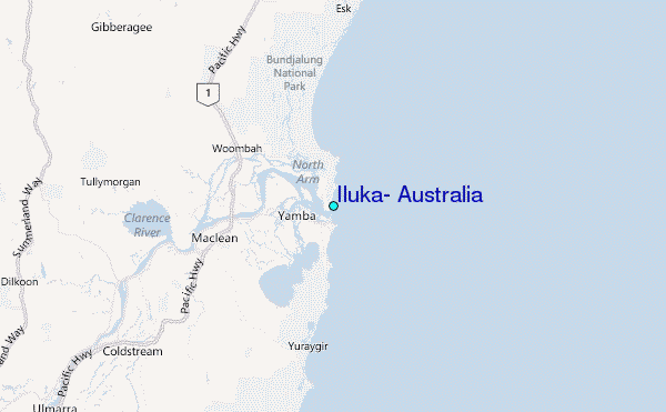 Use this relief map to navigate to tide stations, surf breaks and cities that are in the area of Iluka, Australia.