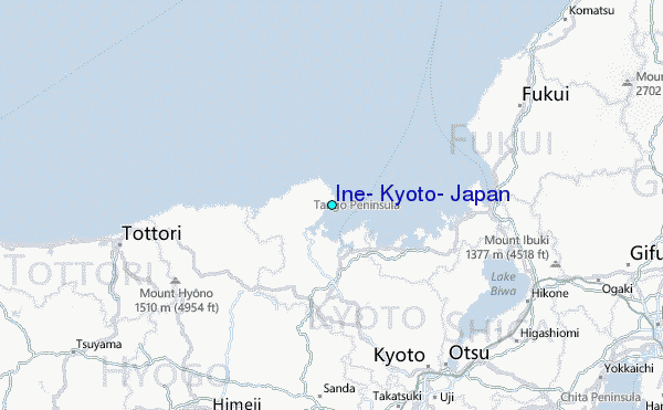 Use this relief map to navigate to tide stations, surf breaks and cities that are in the area of Ine, Kyoto, Japan.