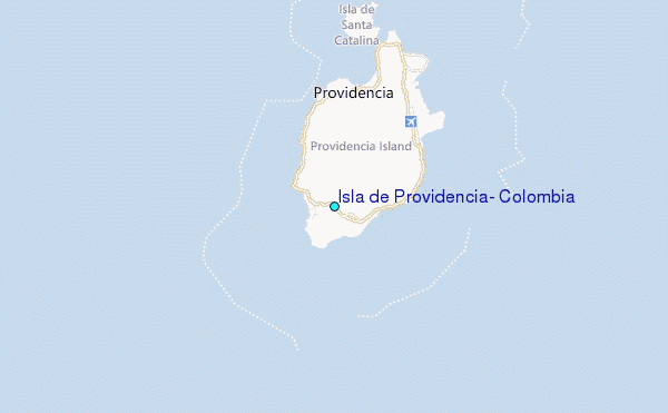 Use this relief map to navigate to tide stations, surf breaks and cities that are in the area of Isla de Providencia, Colombia.