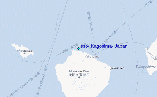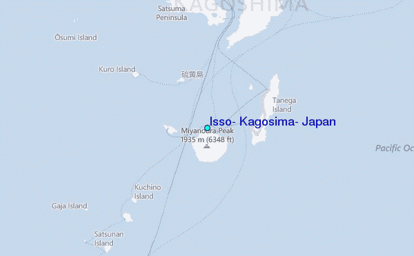 Use this relief map to navigate to tide stations, surf breaks and cities that are in the area of Isso, Kagosima, Japan.