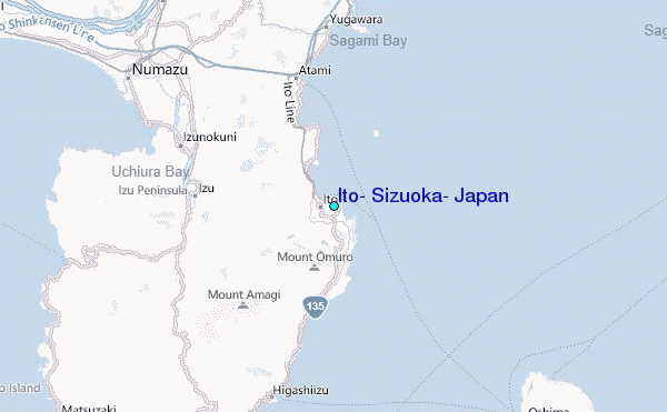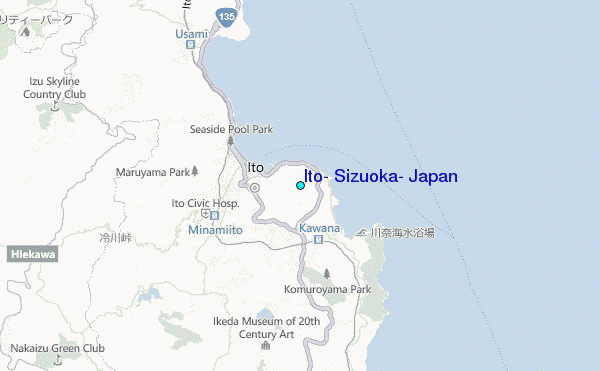 Use this relief map to navigate to tide stations, surf breaks and cities that are in the area of Ito, Sizuoka, Japan.