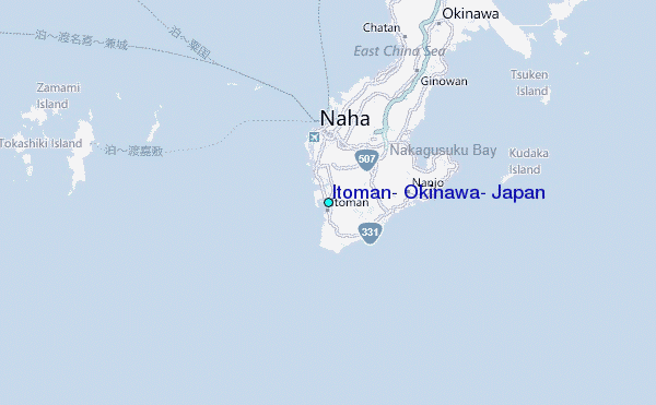 Use this relief map to navigate to tide stations, surf breaks and cities that are in the area of Itoman, Okinawa, Japan.