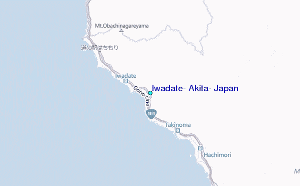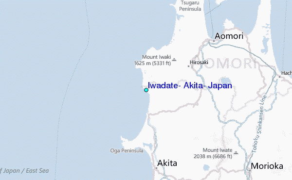 Use this relief map to navigate to tide stations, surf breaks and cities that are in the area of Iwadate, Akita, Japan.