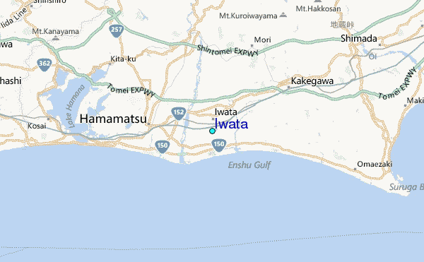 Use this relief map to navigate to tide stations, surf breaks and cities that are in the area of Iwata.