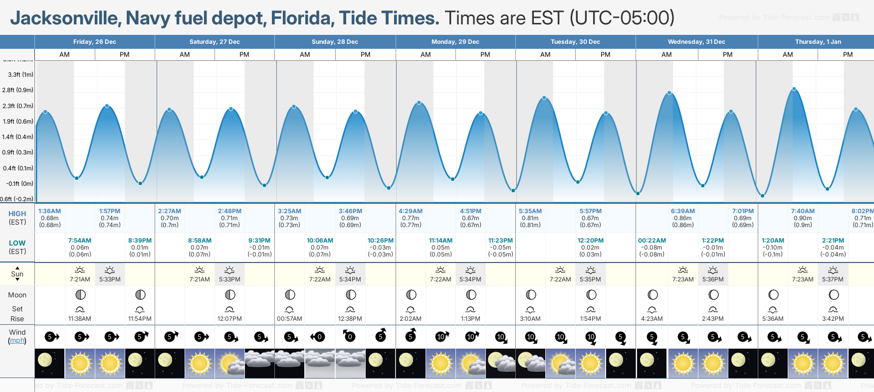 Today's tide times for Jacksonville, Navy fuel depot: Friday 26 December 2025
