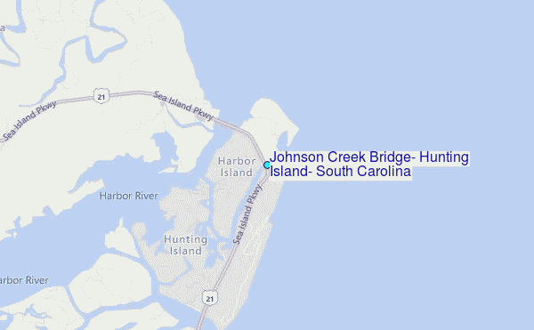 Use this relief map to navigate to tide stations, surf breaks and cities that are in the area of Johnson Creek Bridge, Hunting Island, South Carolina.
