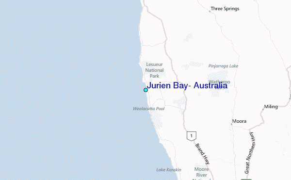 Use this relief map to navigate to tide stations, surf breaks and cities that are in the area of Jurien Bay, Australia.