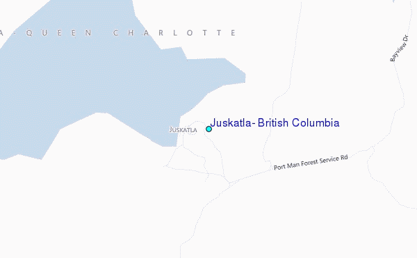 Use this relief map to navigate to tide stations, surf breaks and cities that are in the area of Juskatla, British Columbia.
