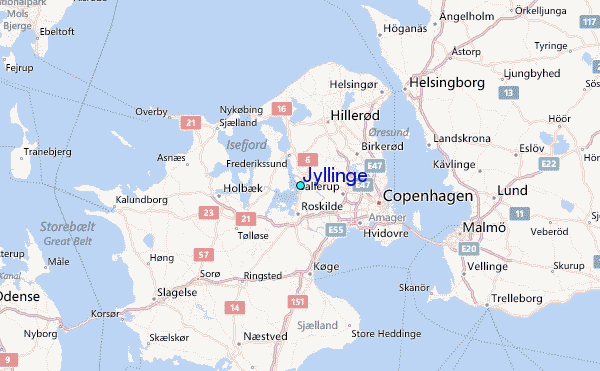 Use this relief map to navigate to tide stations, surf breaks and cities that are in the area of Jyllinge.