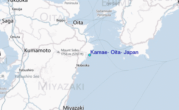 Use this relief map to navigate to tide stations, surf breaks and cities that are in the area of Kamae, Oita, Japan.