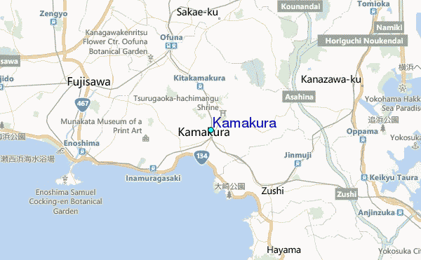 Use this relief map to navigate to tide stations, surf breaks and cities that are in the area of Kamakura.