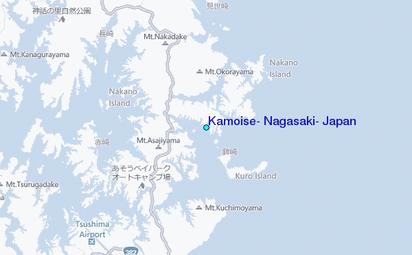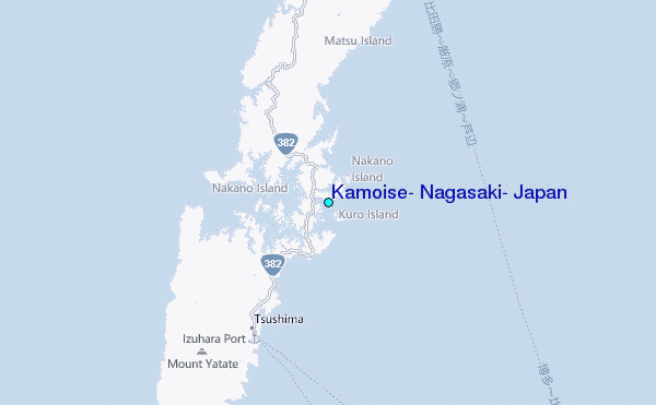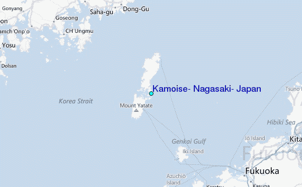 Use this relief map to navigate to tide stations, surf breaks and cities that are in the area of Kamoise, Nagasaki, Japan.