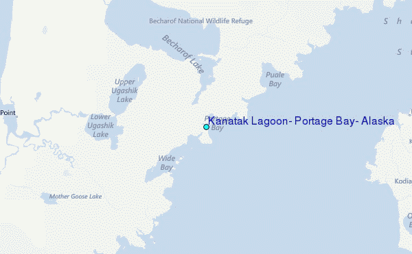 Use this relief map to navigate to tide stations, surf breaks and cities that are in the area of Kanatak Lagoon, Portage Bay, Alaska.