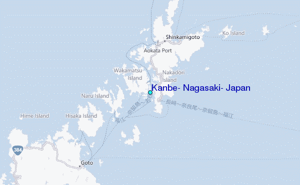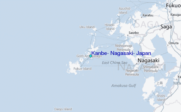 Use this relief map to navigate to tide stations, surf breaks and cities that are in the area of Kanbe, Nagasaki, Japan.