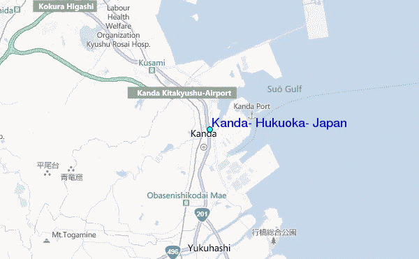 Use this relief map to navigate to tide stations, surf breaks and cities that are in the area of Kanda, Hukuoka, Japan.