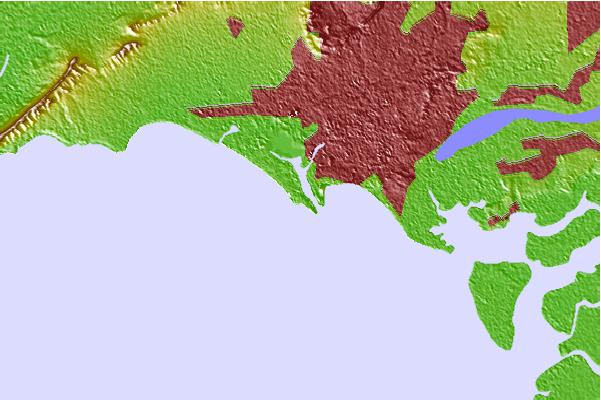 Use this relief map to navigate to tide stations, surf breaks and cities that are in the area of Karachi, Pakistan.