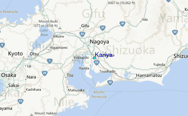 Use this relief map to navigate to tide stations, surf breaks and cities that are in the area of Kariya.